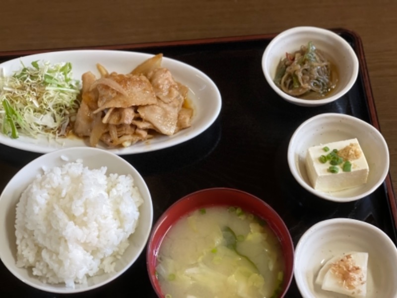 初生姜焼き定食!うまい!ご飯進む! 冷奴は何もかけないのが安定