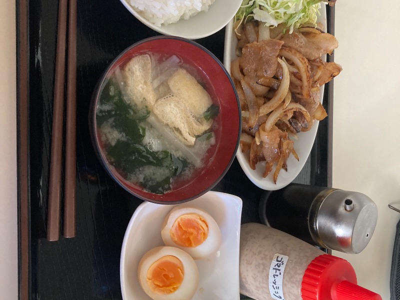生姜焼き絶品 味噌汁 田楽の塩味加減も丁度良い