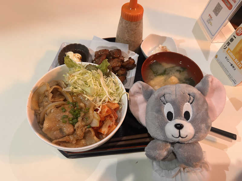腹ペコの時は焼き肉定食だねそして今日は煮卵もプラスしてがっかり食べた