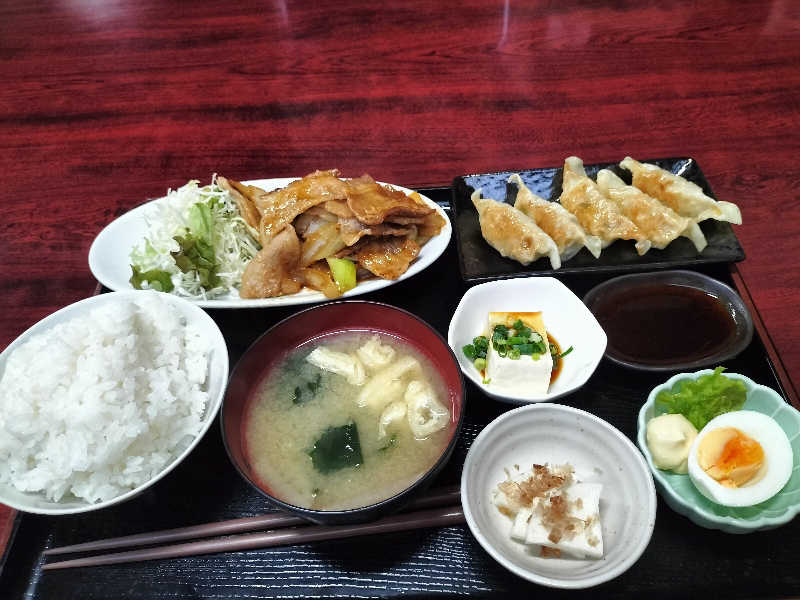 いろいろ迷ったけど、一番人気のしょうが焼き。しょうが焼きはもちろん、しきじの水で炊いたご飯おいしい😋