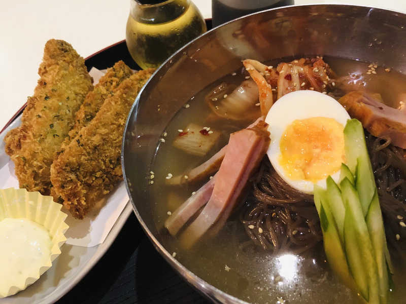 冷麺とチヂミじゃなくてフライが食べたくなり、鯵ではなく鰯を選択! どちらも美味しくいただきました😋