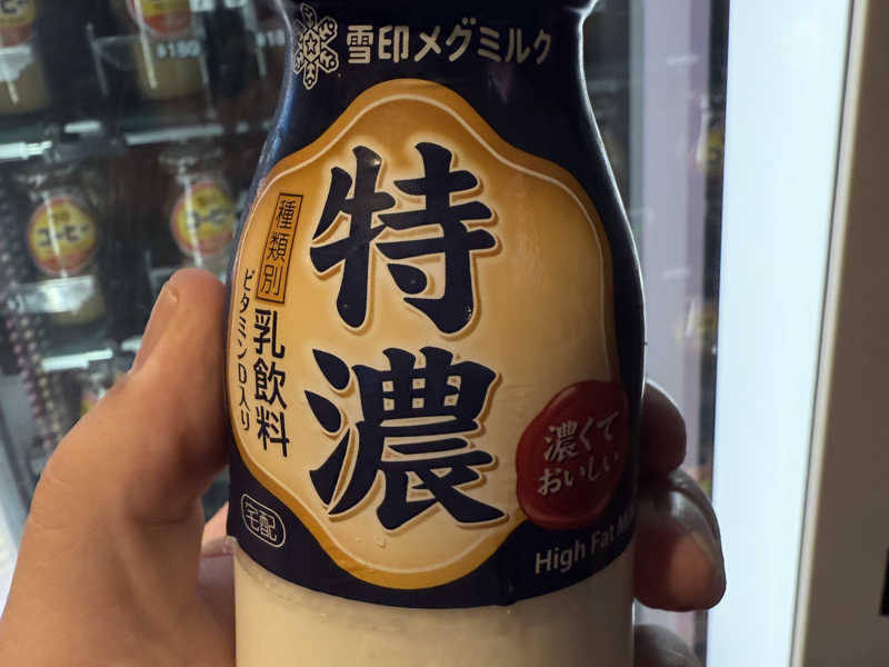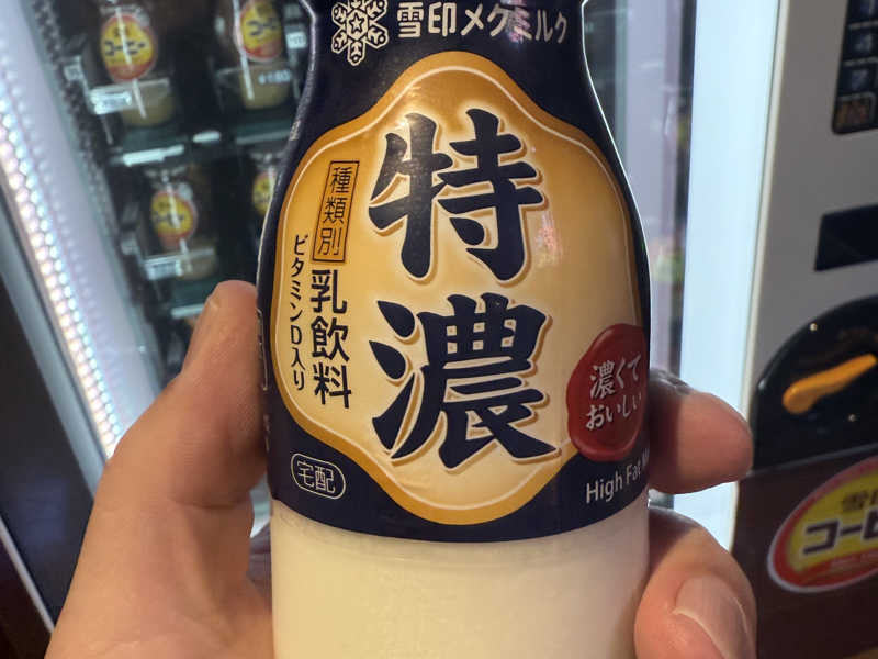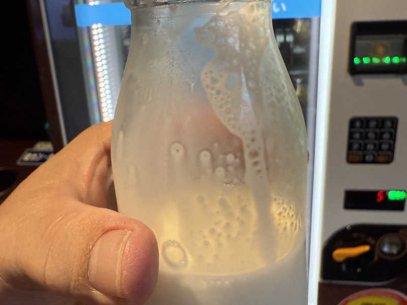 瓶牛乳の自販機が設置されました 飲みかけの汚い写真ですいません🙇