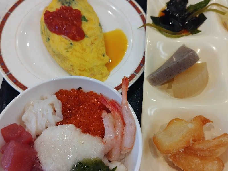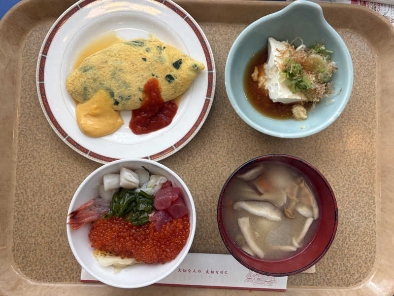海鮮丼にしてみました🐟手作りオムレツ(ほうれん草🍅トマト🧀チーズ)美味しい😋