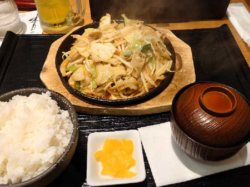 鉄板熱々のボリュームエグい。ホルモンもたっぷり。 ウマウマ。ジョッキオロポと共に
