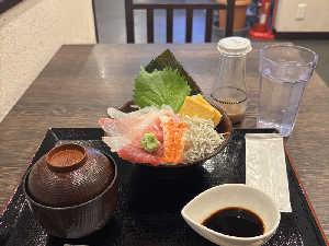 いつもの海鮮丼限定だけど平日なら意外と夜ある。初めてエビとしらすに出会えた! いつもこコーヒーと共に