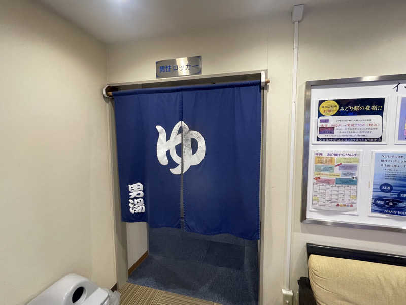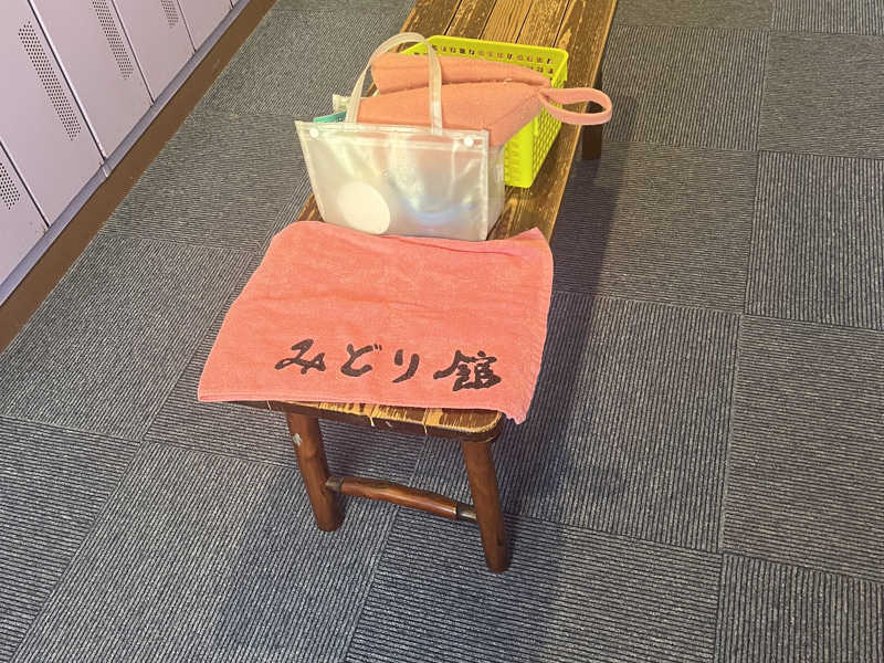 受付後2Fに上がる。ロッカーは1段で中にハンガー×3とロッカー番号札付きのカゴにフェイスタオル×2とバスタオル×1。ここで全裸になってカゴを持って1F浴場前の棚に置く。日帰り用の館内着もここにある。給水器が設置されているので1杯飲んでおくと良い。
