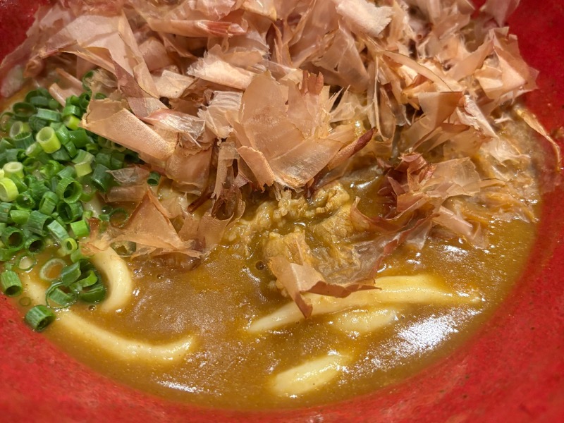 かつお節に隠れている麺が、かなり熱いので注意!