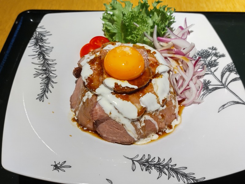 お肉とご飯の間にキャベツの千切りがあり、お肉も柔らいし、辛くないからパクパクいっちゃう😋🫣