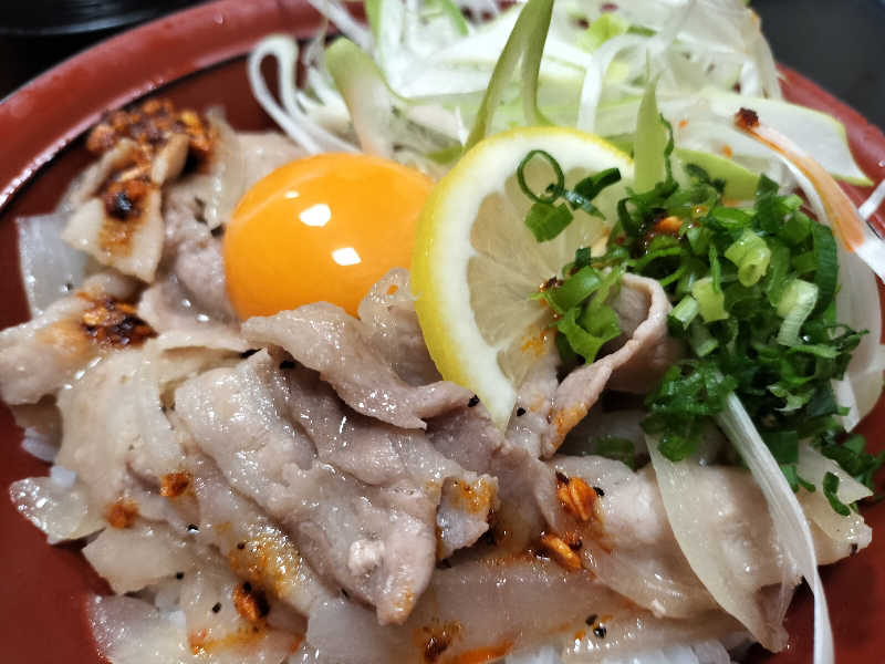 サクサクのトンカツに味噌だれと温玉と野菜が乗っかっています