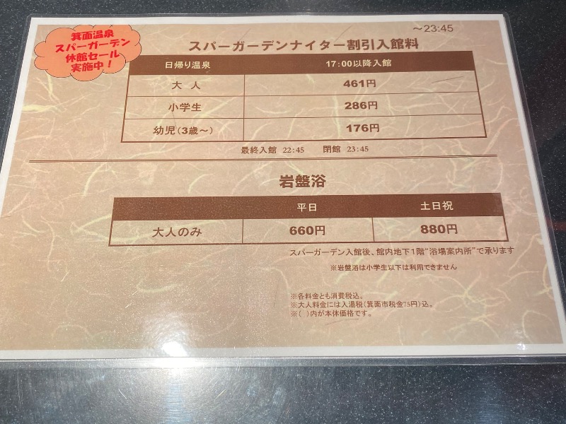 いつもは紅葉季節の箕面の滝に行くついでにだったんですが、温泉目当てだったのでサウナ利用はしてなかった。
