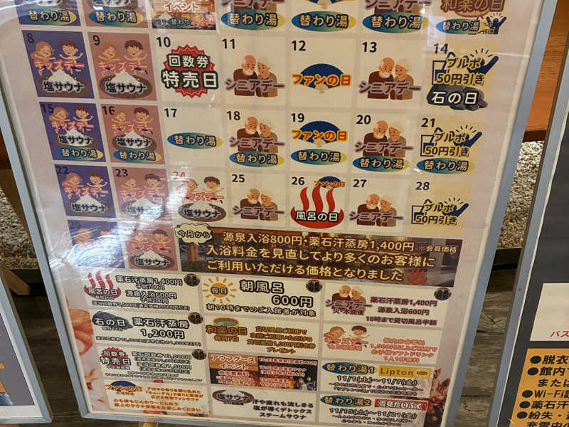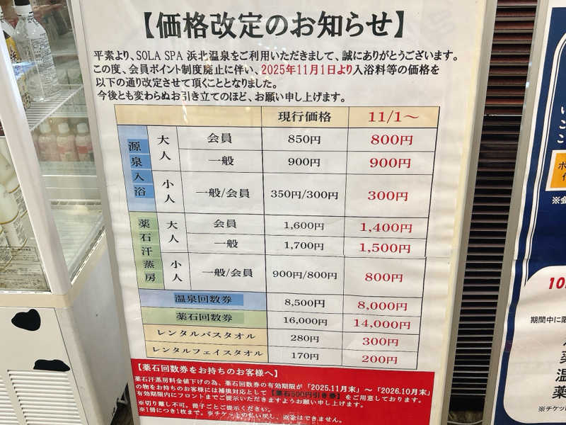 といっても設備の老朽化だったりで利用できるお風呂や岩盤室が減ってるから...