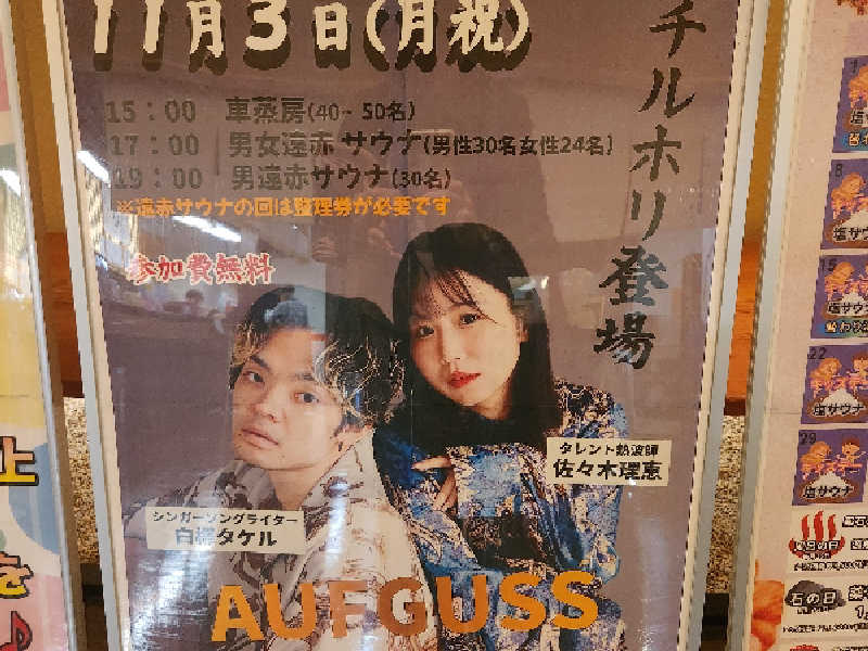 地元浜松出身のシンガソングアウフギーサ白樺タケルさんが…女性アウフギーサーと協力タッグを組んで舞い降りたですと…。しかも相棒タレント熱波師佐々木理恵さん美人さんではありませんか……これは……。。。。。