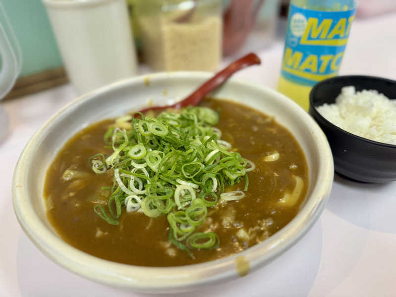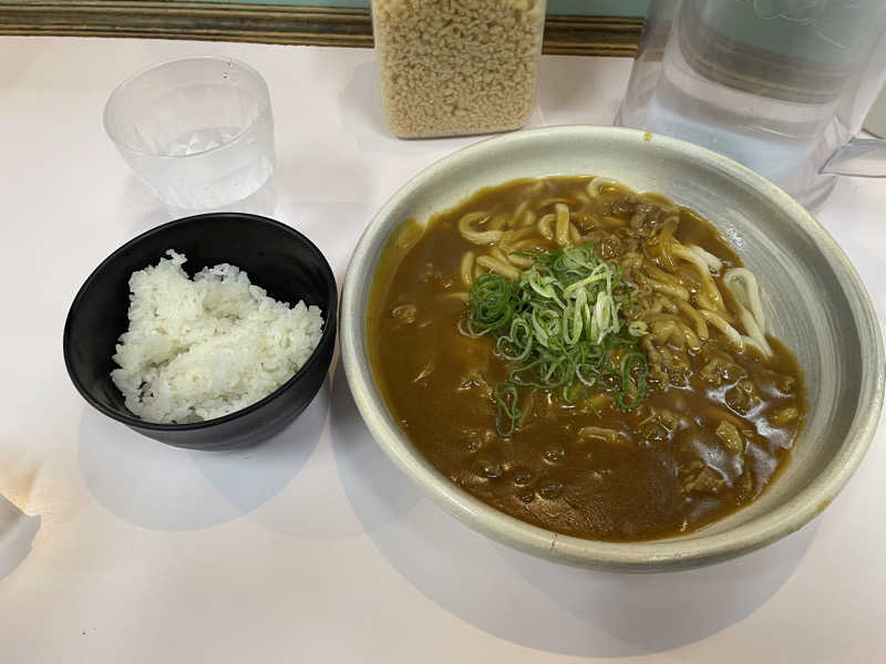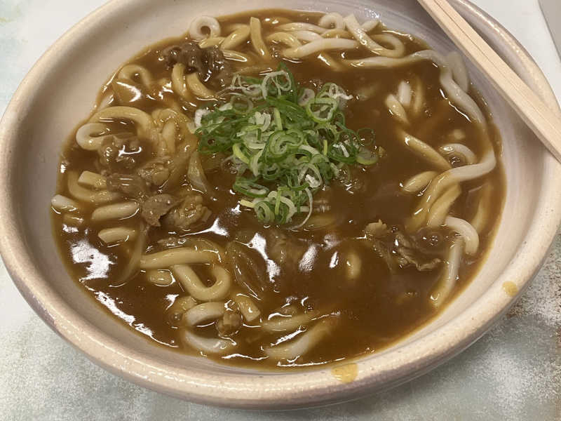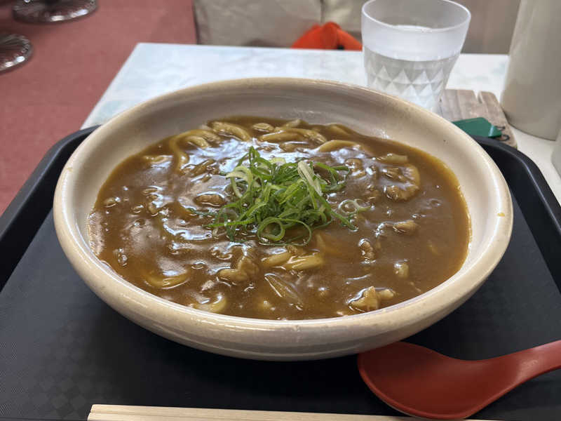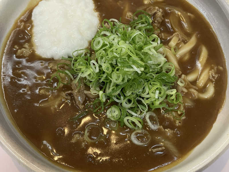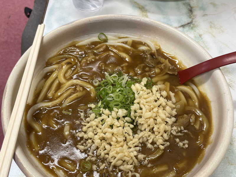 着いたら12時だったので先に名物カレーうどん食う。山芋トッピングしてごはん投入。腹パンサウナ、キツい