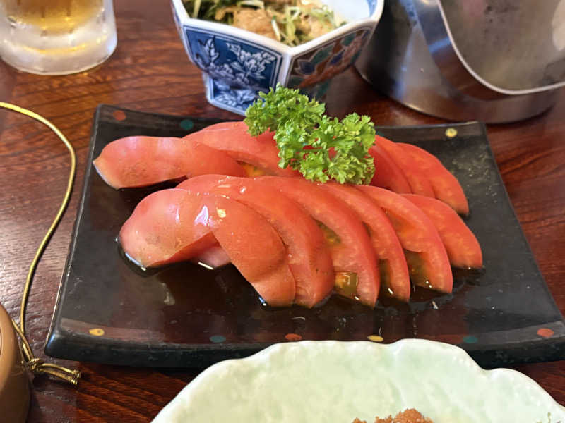 今日のトマトは切り方が違ってました。 ごま油もマスト!