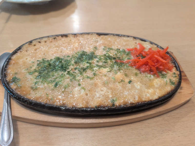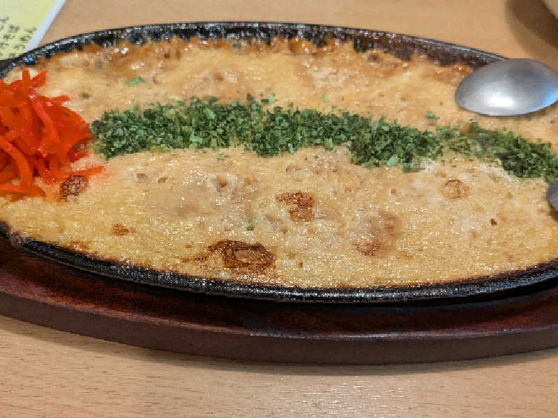 豆腐ととろろ芋を焼いたメニュー。ニンニクの風味と合わさってイメージに反してガッツリ美味い!