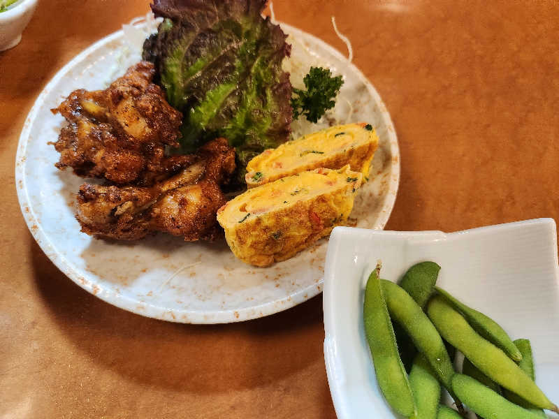定食セット、焼き鳥(もも・皮)も🍚お酒がピッタリ合ううまさ😋ここで食って飲んだら寝るだけ🤤