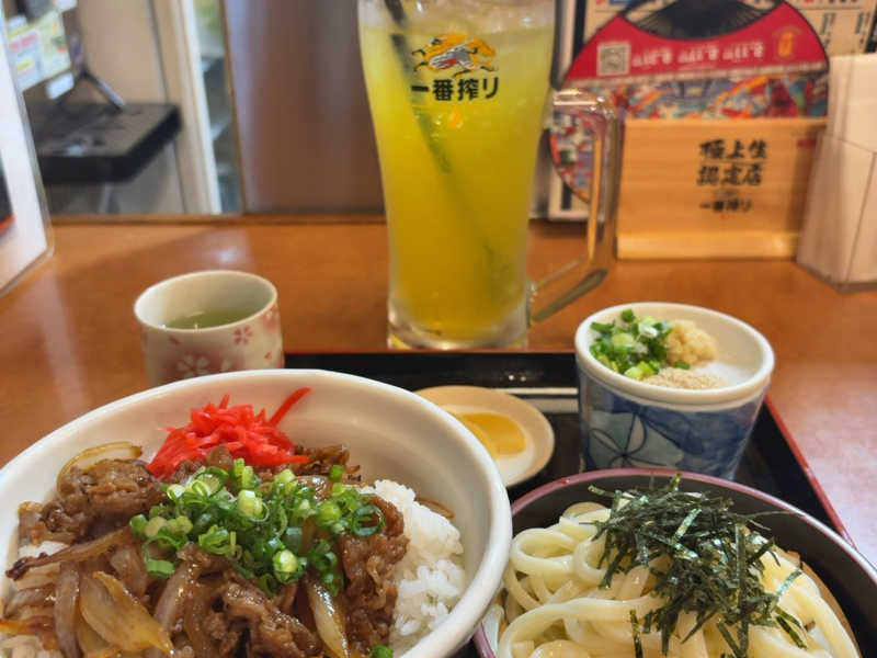 平日限定。 肉肉しい丼と、もちもちのうどんがたまらない