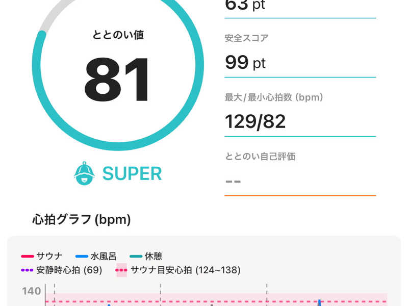 ⭐️サ室内温度計は98℃指してるが3分で脈150超える