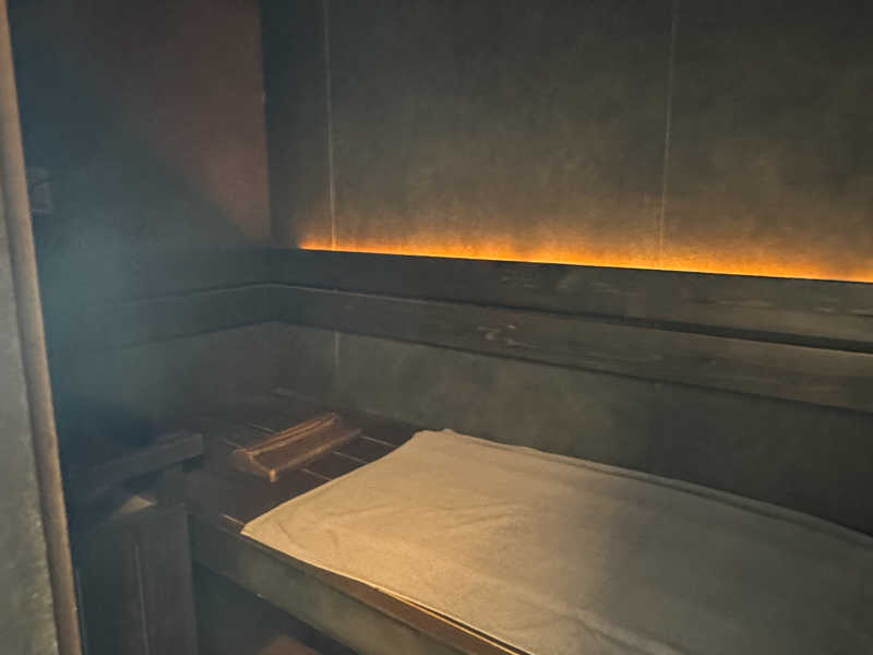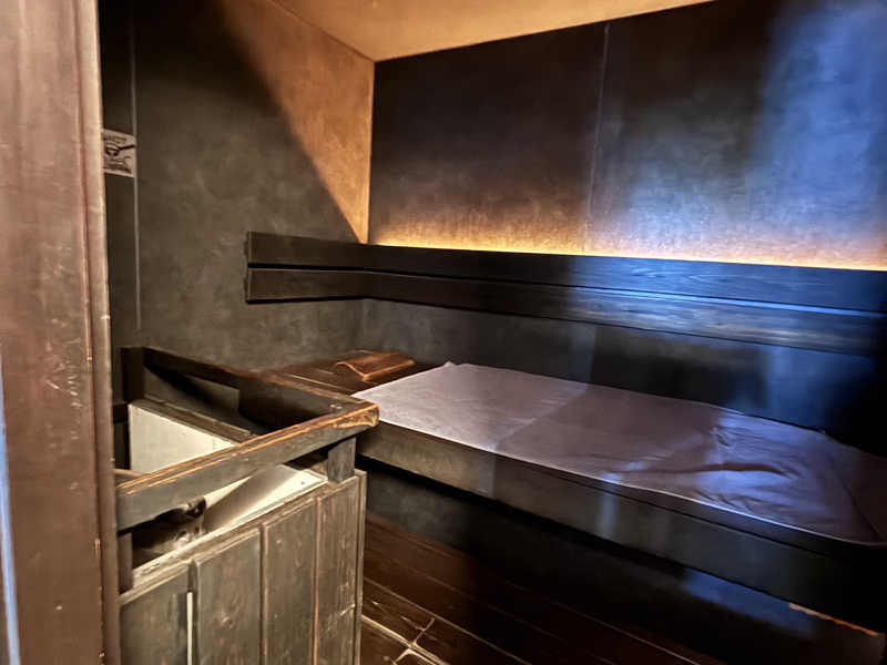 サウナは狭くて暗くてすごく良かった。ロウリュするとすぐにあちあちに。