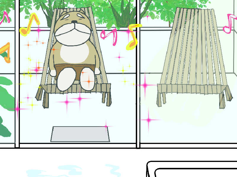整いスペースは、エアコンとサーキュレーターがあって、優しい風が心地よい。