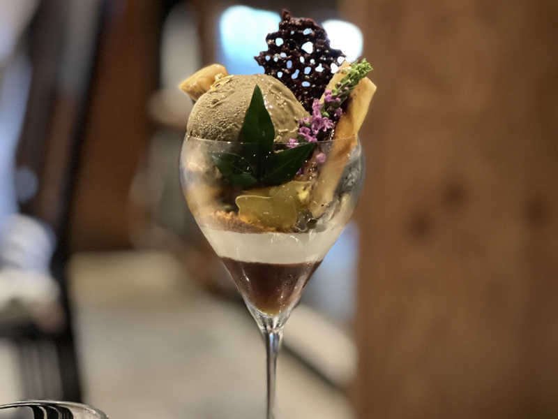 整い後は、1階の「夜パフェ専門店VIGO」にて、甘さ控えめの大人のパフェをいただきました。