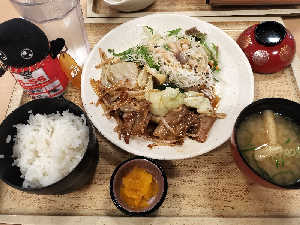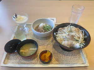 量は少な目。野菜盛り、うどんを追加して、形になった。なに健のアレと比べてはダメなんだけど…。