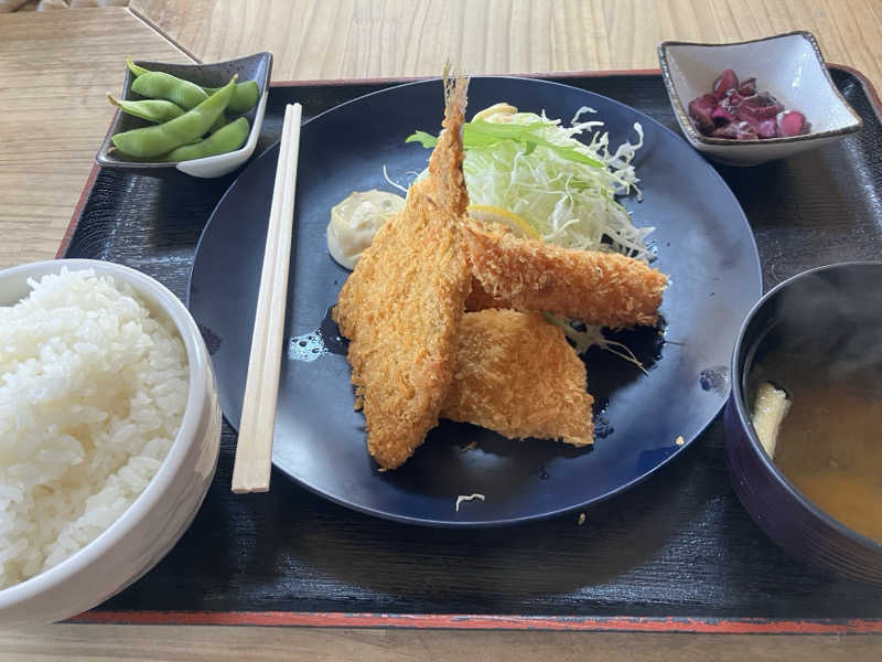 サクッと香ばしい衣に包まれたアジとエビ🐟🦐じゅわっと広がる旨みとタルタルの酸味が絶妙なご飯泥棒