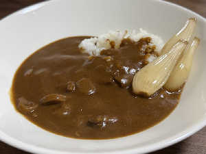 久々のインスタントカレー、カレーマルシェ。義母の自家製甘くないらっきょう添えて。サ活後に沁みる。