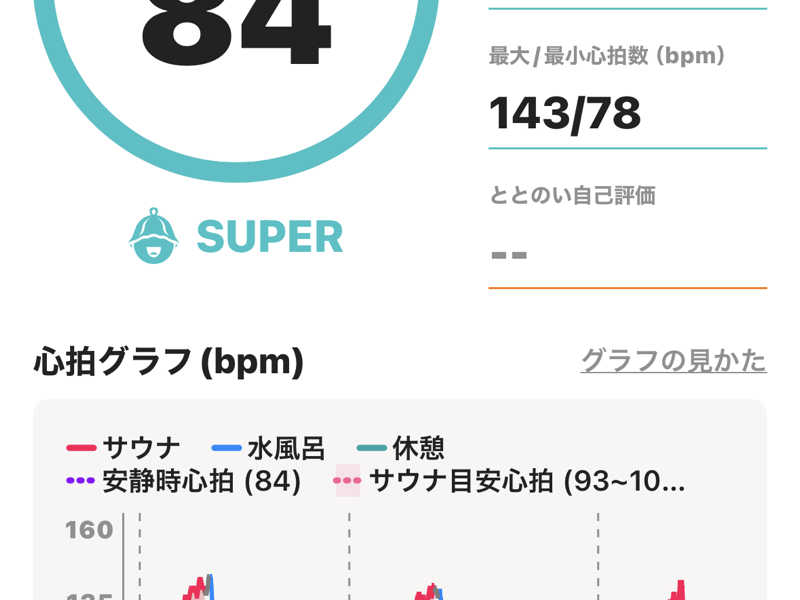 振り返ると1セット目サ室入ってすぐに脈拍は既にととのい圏内に突入。6セット耐える…という状況。