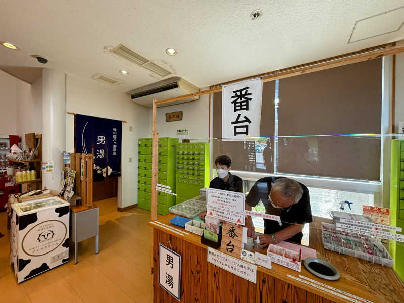 靴をコインレスの下駄箱に預けて券売機でチケットを購入。下駄箱の鍵とチケットを番台に渡してロッカーの鍵を受け取れば受付完了なんですが😅