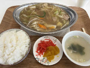郷の駅喜茂別での昼食 喜茂別町のソウルフード あんかけ焼きそばで麺を完食してから、米を入れて、中華飯