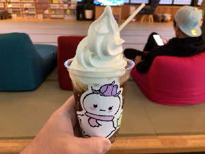 以前食べて美味しかったので😊ソフトクリームにキンキンのコーヒー牛乳。火照った身体が一気にクールダウン