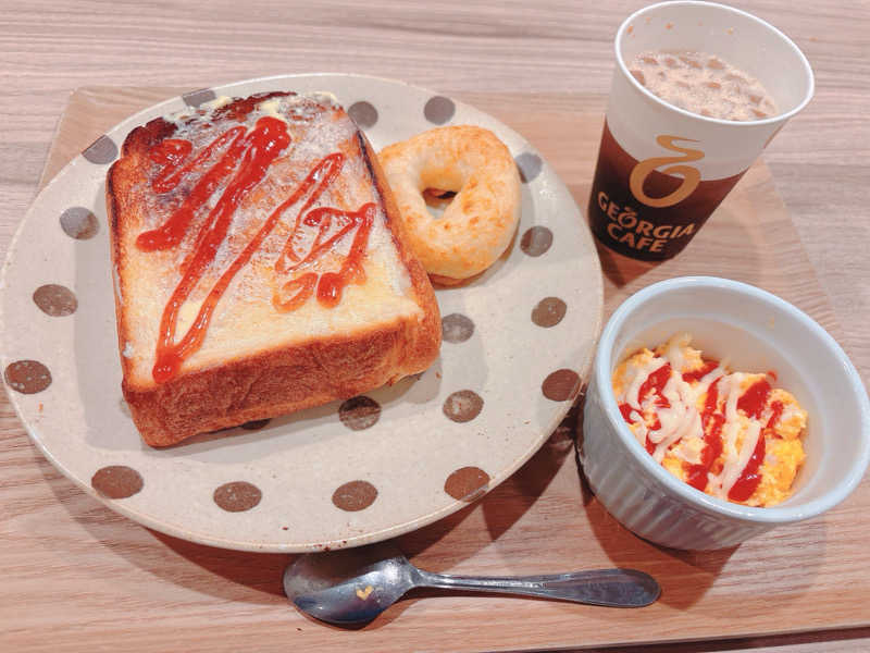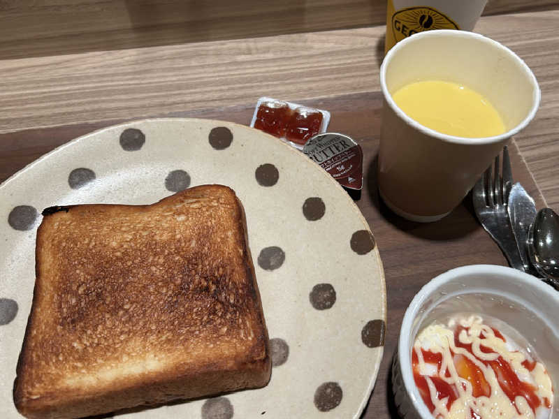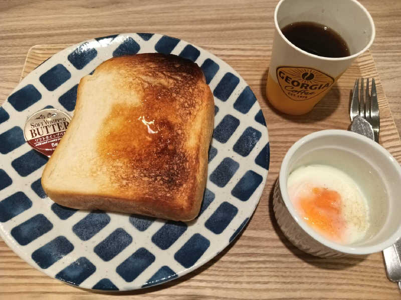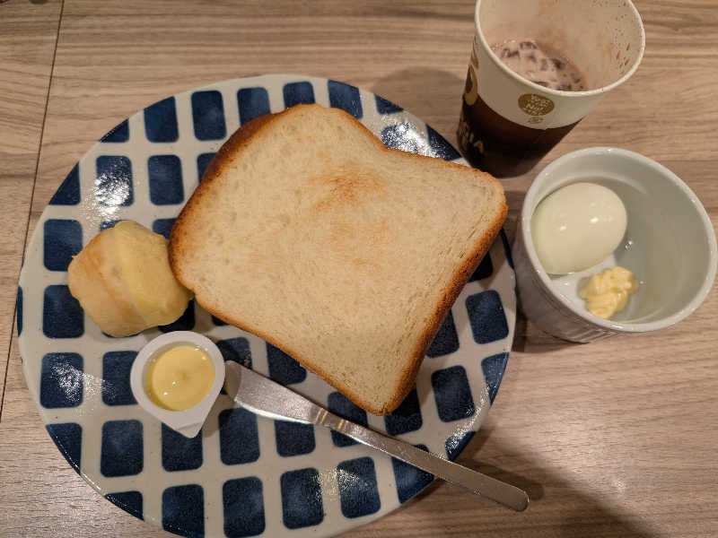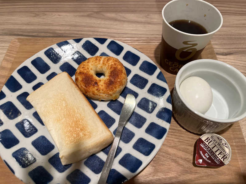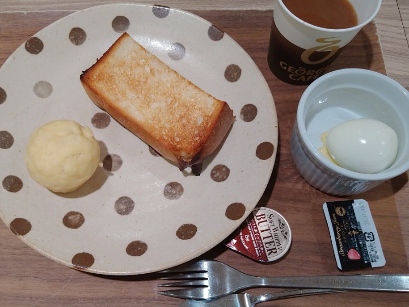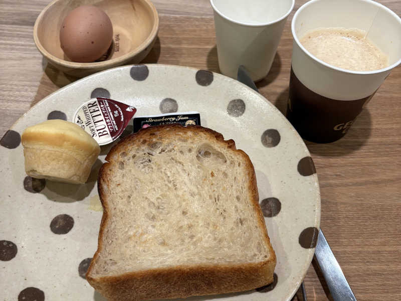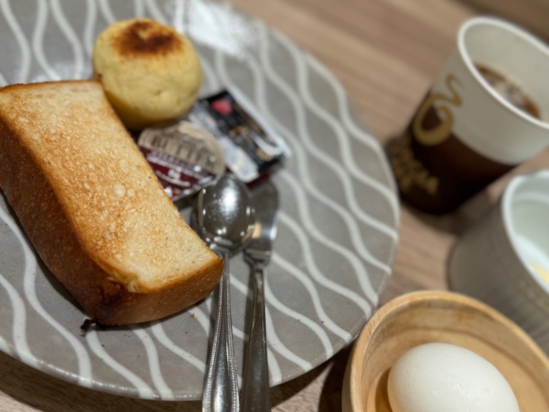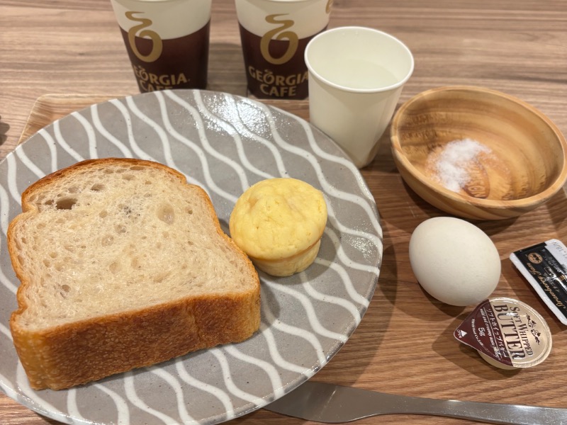 宿泊料金に含まれるモーニングセット☕️ パンがフワフワで美味しかったです!