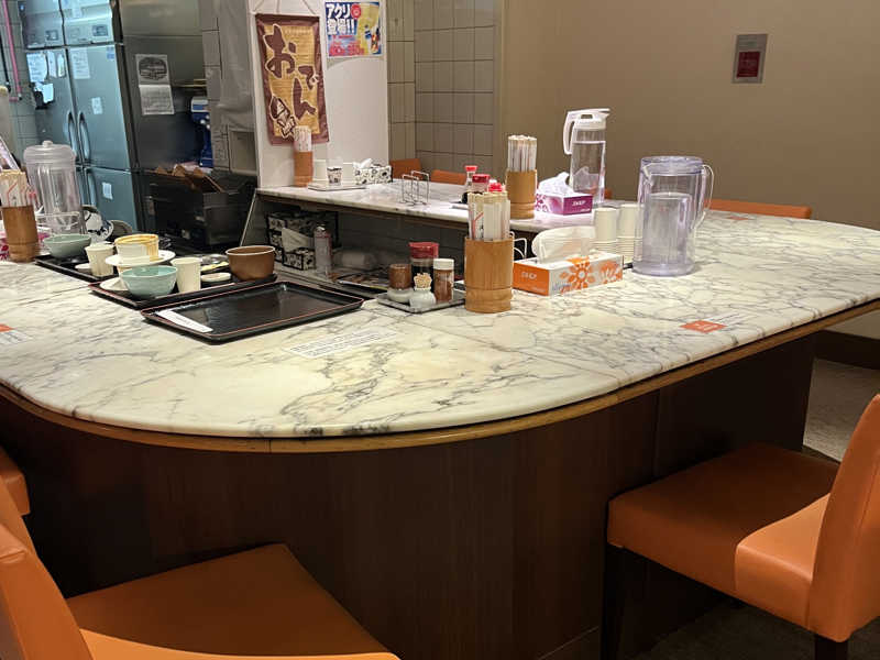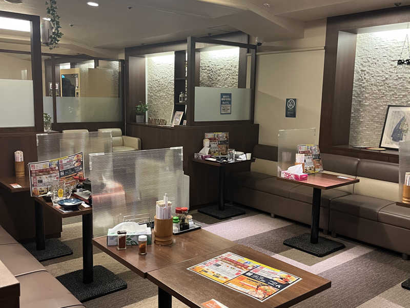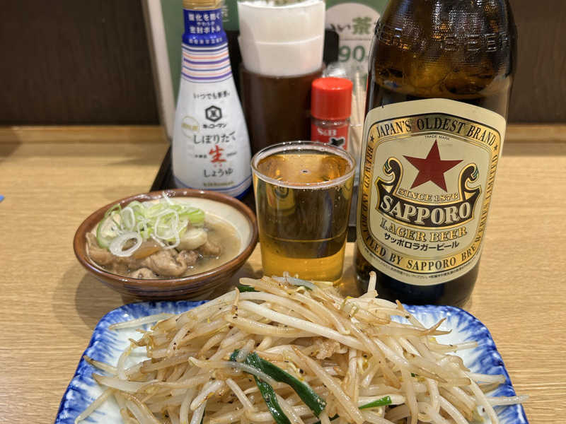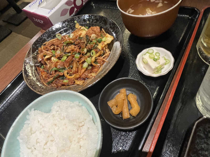 湯上がりにB2Fのレストランにいきました。オーダーストップギリギリでしたが、おつまみ2品セットに生中と酎ハイ、日替わり豚キムチ定食をました。Jカウンターはきれいでいい感じでしたが、満席で座れずにテーブル席になりました。程なく飲み物が到着、まずは生からいただきました。そして赤ウインナーとどで焼き、定食が一度に到着しました。どて焼きのモツが甘くておいしかったです。食べて終わったくらいでアルコールが回ってきていい気持ち、その後はカプセルで爆睡しました。