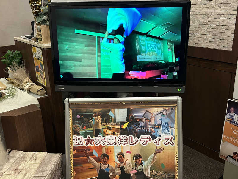 17時過ぎにイン。3Fのロッカーに荷物を放り来み、階下に。入口ではパン屋のお姉さんたちのアウフグースの様子がモニターに。地下一階が浴場メインで、2階がそのほか諸々。ビル建てる時にかなりお金使ってますね…(余談だが、大東洋はパチンコ屋というイメージの方多そうだが、メインは優良物件を多数持っている不動産業である)。