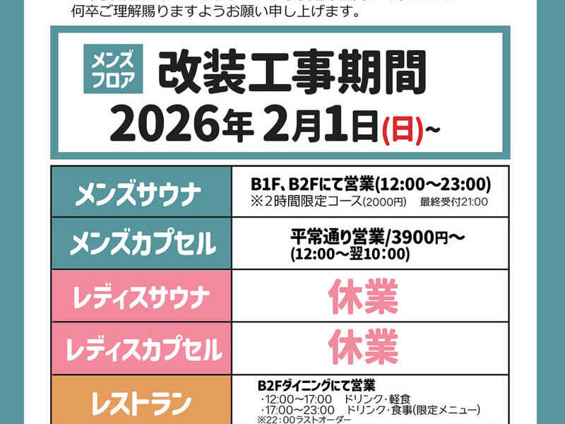 - 2022.05.26 00:00 大東洋レディスサウナ