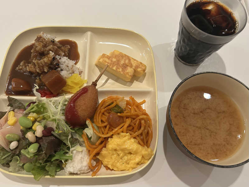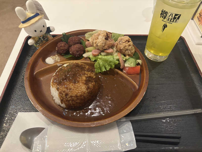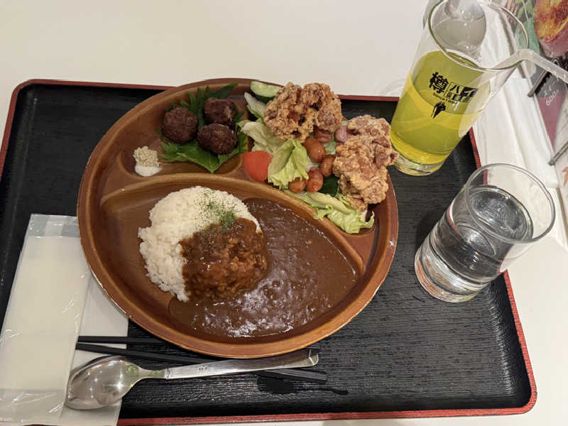 神戸サウナカレー 肉団子3個 唐揚げ2個 西宮サラダ(レタス セロリ ウィンナー トマト) オロポ
