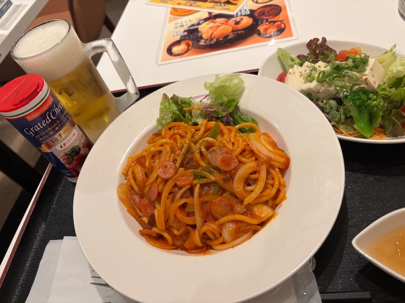 ぼっかけ焼きそばとナポリタンの2択でサラダに合わせるならやっぱりパスタ🍝次は焼きそば食べたい