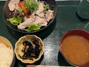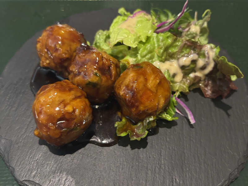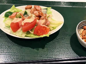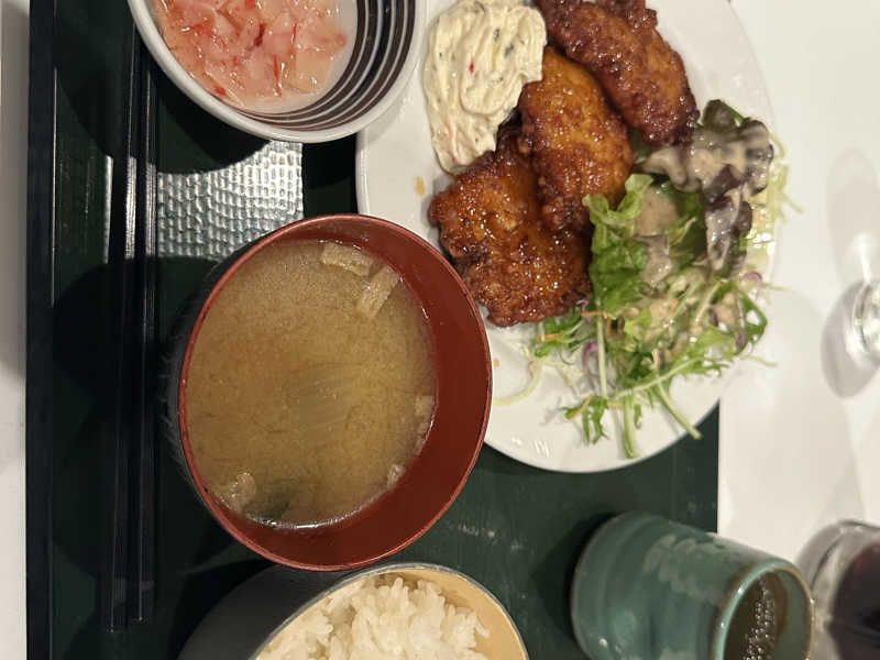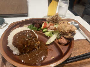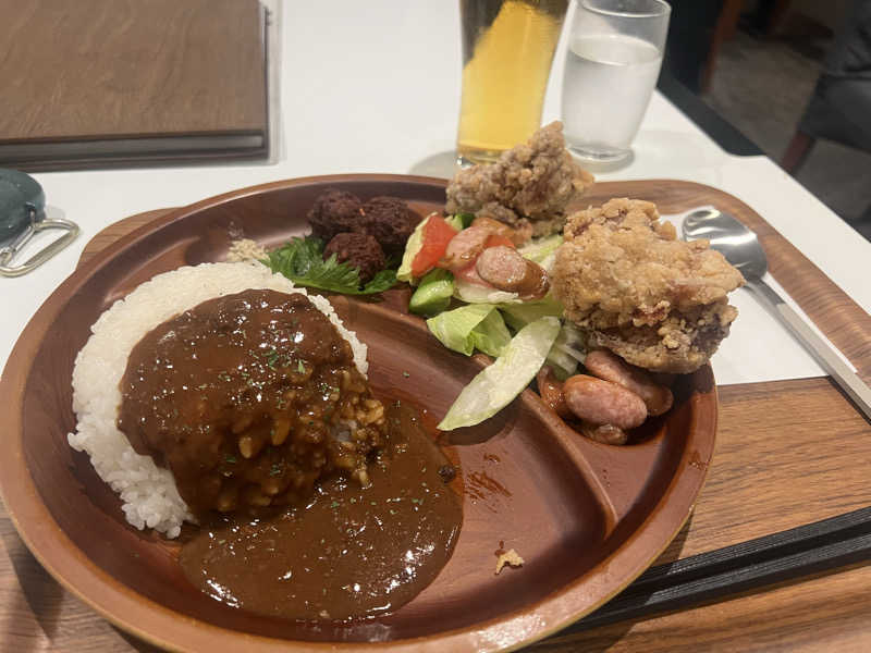 カレー、サラダ、からあげ、肉団子、ドリンク付き。控えめに言って最高。