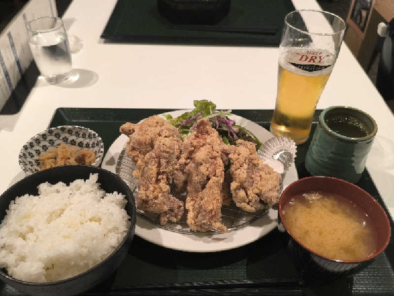 生ビールセット、唐揚げ定食、生グレサワー、肉団子 どれも美味しい。