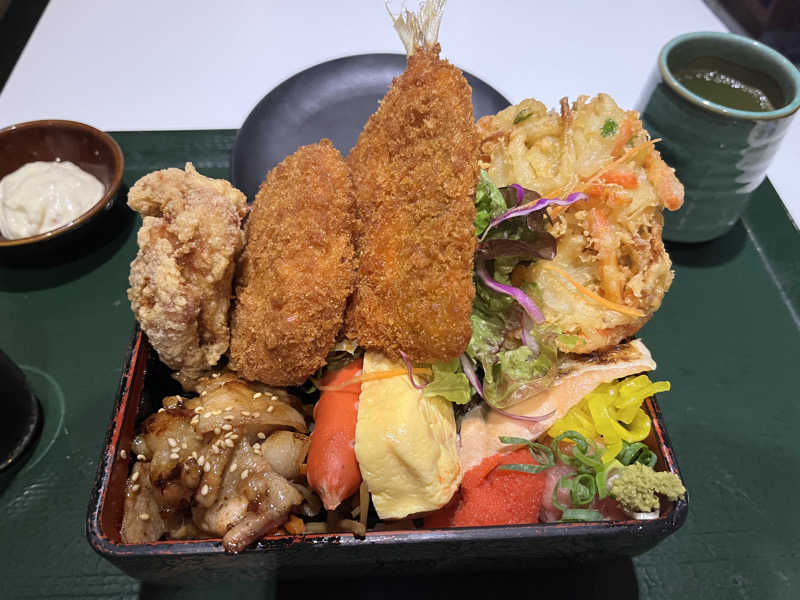 勢いで頼んでしまった。これぞ食の宝石箱。最後まで楽しい。深夜メシにしては揚げ物食べ過ぎたけと…