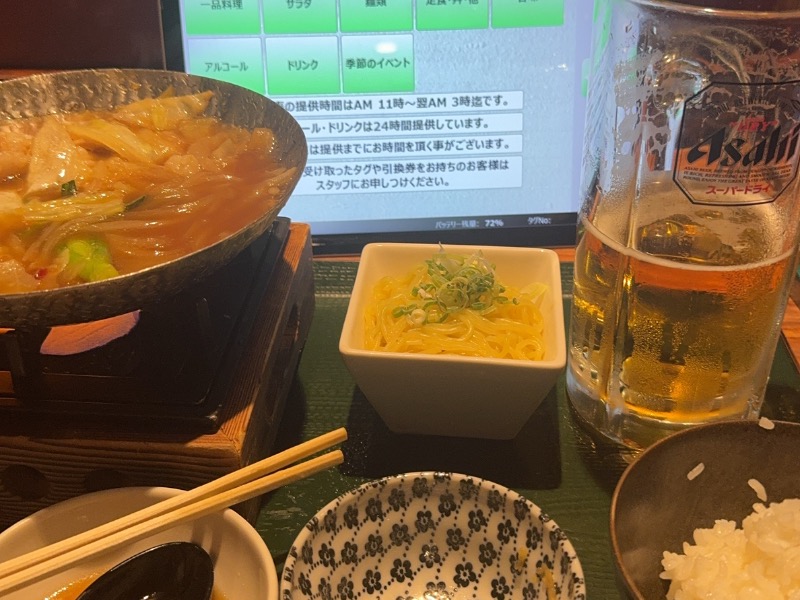 とんこつスープが野菜に染み込み、美味しかったです。地元神戸のサイダーを一緒に飲みました。