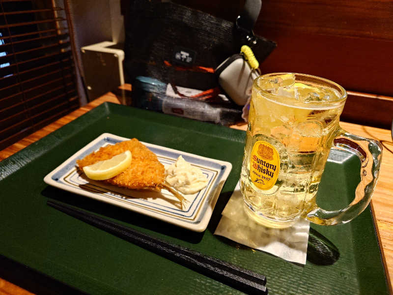 ハイボールとアジフライ。肉厚のアジフライでした^_^
