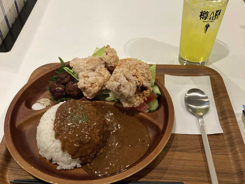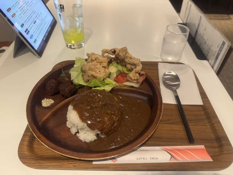 カレー、サラダ、からあげ、肉団子、ドリンク付き。控えめに言って最高。