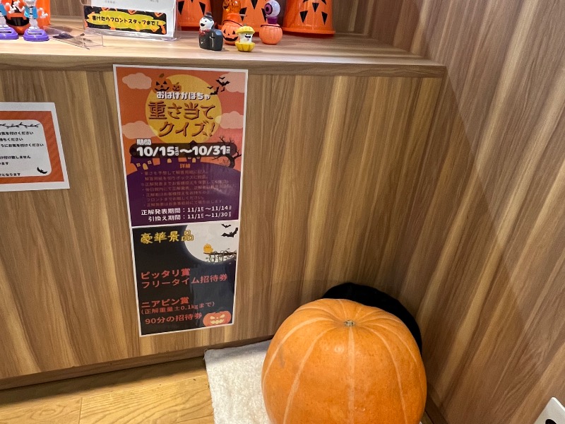 帰り際、ハロウィン恒例「おばけかぼちゃ重さ当てクイズ」にも挑戦。