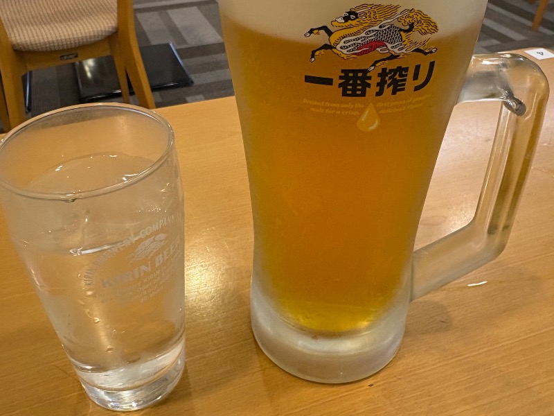 何にするか迷っての生姜焼きでしたが かなりうまい! メガ生ビールを添えて