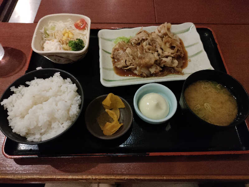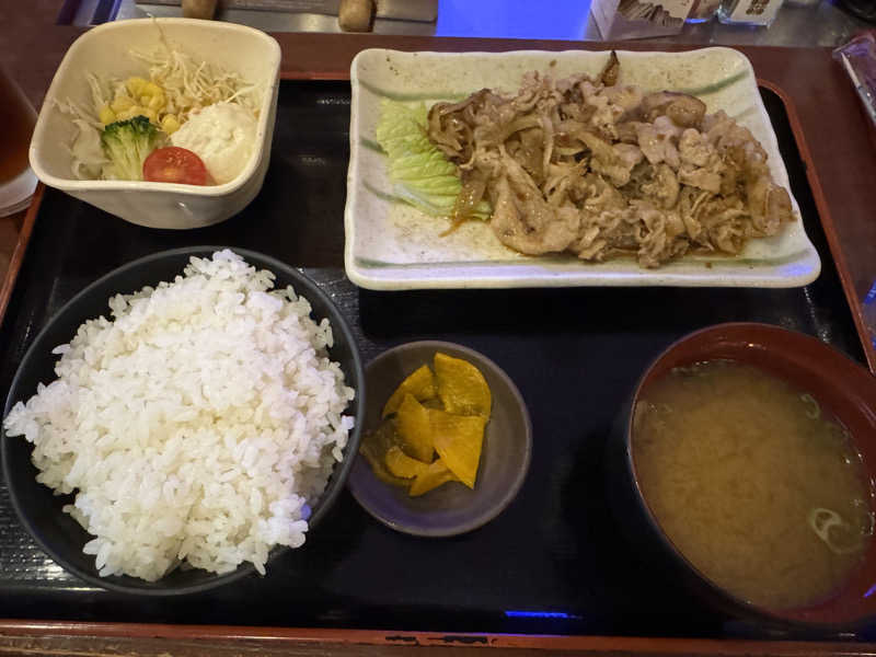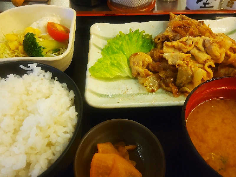 ボリュゥムたっぷりの生姜焼き。 これは白ごはんが足りなくなりそうなヤツ。 アムザの飯も美味い。