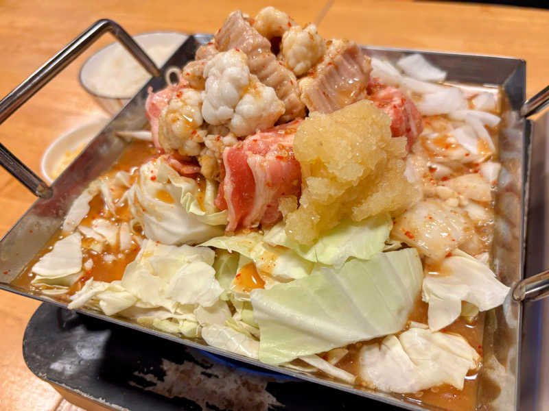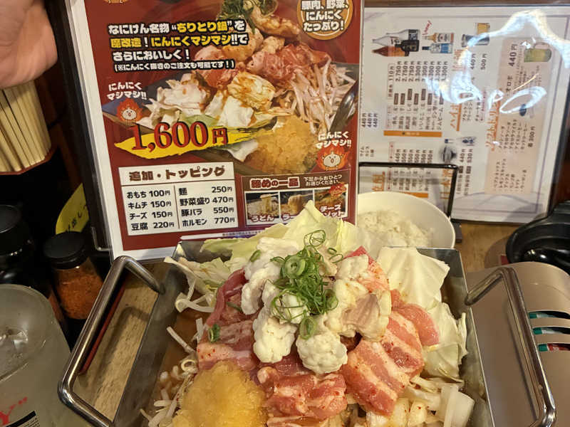 名物ちりとり鍋がニンニクマシマシ。〆はリゾットとうどんとラーメンから選べます