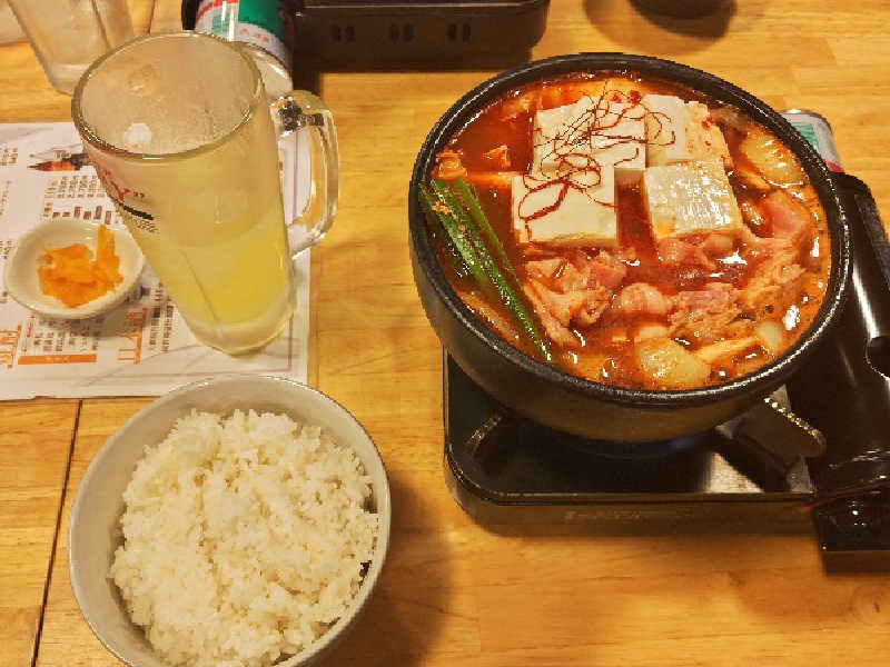 ぐつぐつのスンドゥブは旨辛で大満足。