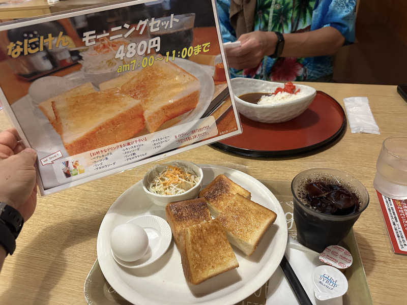 このモーニングセットにソフトドリンク付き。カレーに変えることも出来るがドリンクが付かないらしい。